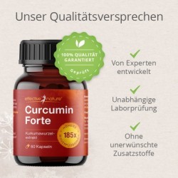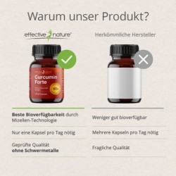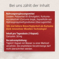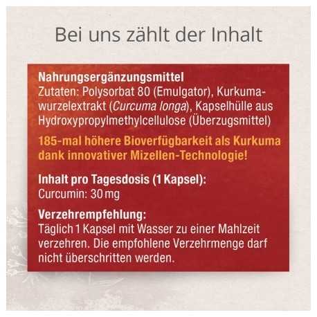 Curcumin Forte, die Allzweck-Kapsel mit natürlichem Curcumin aus der Wurzel des „Gewürz des Lebens“ – der Kurkuma. In Curcumin Forte ist der Wirkstoff Curcumin dank der innovativen Mizellen-Technologie 185-mal besser verfügbar als bei normalem Kurkumapulver. Curcumin Forte eignet sich daher vor allem zur akuten Einnahme.