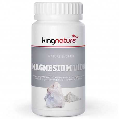 Magnesium Vida enthält 60 Kapseln mit den folgenden Magnesium-Salzen: 270 mg Magnesium-Taurat, 265 mg Magnesium-Chlorid, 250 mg Magnesium-Malat und 235 mg Magnesium-Carbonat. Enthält 187 mg elementares Magnesium pro Kapsel. Inhalt netto: 68 g. Wir verwenden ausschliesslich Vegi-Kapselhüllen, hergestellt aus pflanzlichem Material (HPMC) ohne Gelatine. Magnesium Vida ist lieferbar ab Lager.
