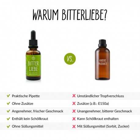 Wir empfehlen, dreimal täglich 25 Tropfen auf der Zunge zergehen zu lassen. Die angegebene empfohlene tägliche Verzehrsmenge darf nicht überschritten werden. Genau so wie Du dich an süss, sauer, salzig, scharf und umami gewöhnen konntest, kannst Du dich auch an bitter gewöhnen.